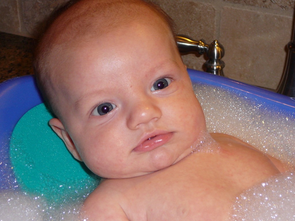 Peter Michael is 8 weeks old today. Can you believe it! We're doing very well here and settling down into a routine. He has just naturally fallen into a sleep, wake, eat pattern which seems to work well for us. Last week we started swaddling him (actually double swaddling because he loves to kick) and he has been sleeping great at night. We're down to only one feeding at around 3:00 or 4:00 am. And his sleep has gotten more consistent during the day. He has really started smiling and talking lately. He just smiles and coos if you look right in his face and talk to him.