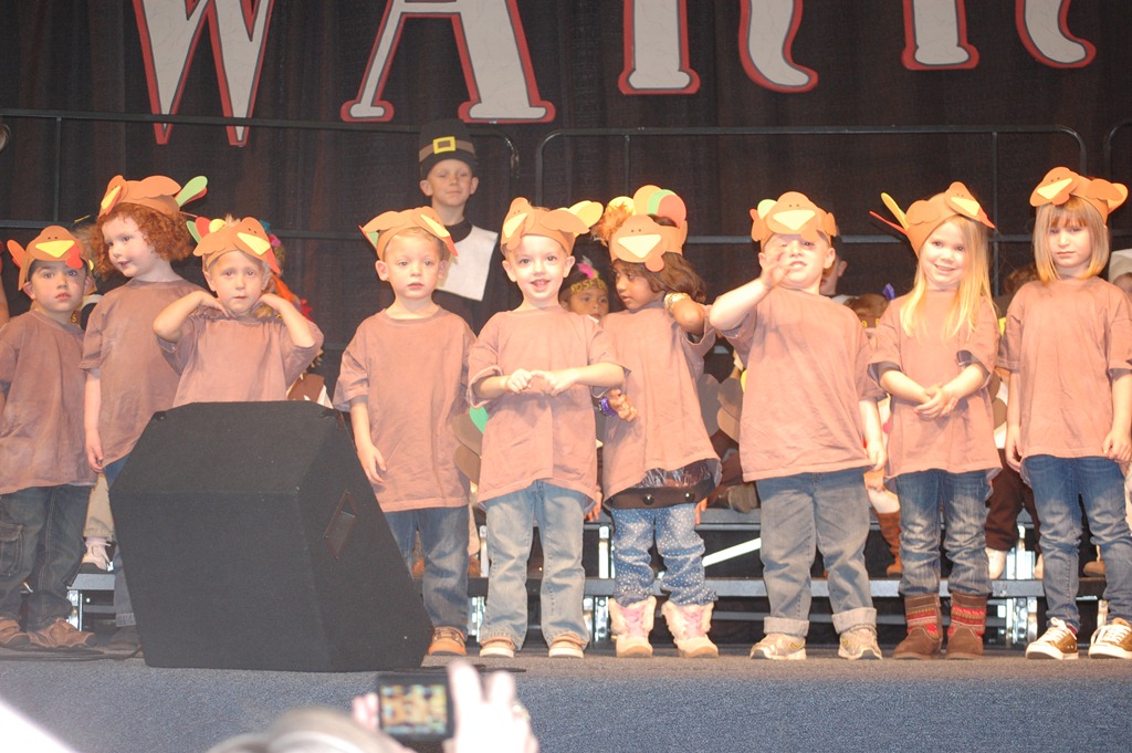 Peter had his first program last month at his preschool. He’s never been up on the big stage before so it was pretty exciting to see him in the spotlight…until we actually saw him in the spotlight. He was cute because he’s always cute but I think he was also a little lost. He sang the first song and got into the motions a little. But by the second song he pretty much just stood there with his little mouth open looking around. Every once in awhile he would yawn or rub his eyes. But that was about it. Poor little guy. He didn’t sleep well the night before and woke up early so I think he was just tired. Or he might not be the natural performer that his big sister is which is okay with me.